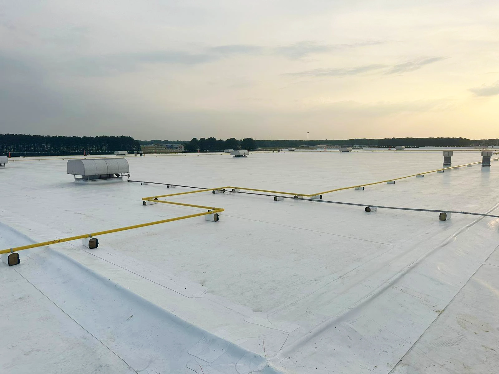 This lightweight, quick to install option is a popular economical system in commercial roofing, mechanically attached roofs are held in place by plates and fasteners secured through the membrane and into the deck. This stability makes them an ideal choice for areas with moderate winds.